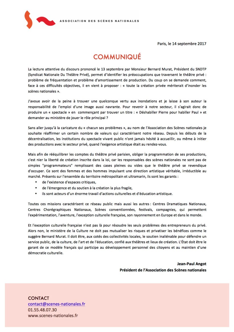 « Toute la création privée mériterait d’inonder les scènes nationales » (Bernard Murat, SNDTP)